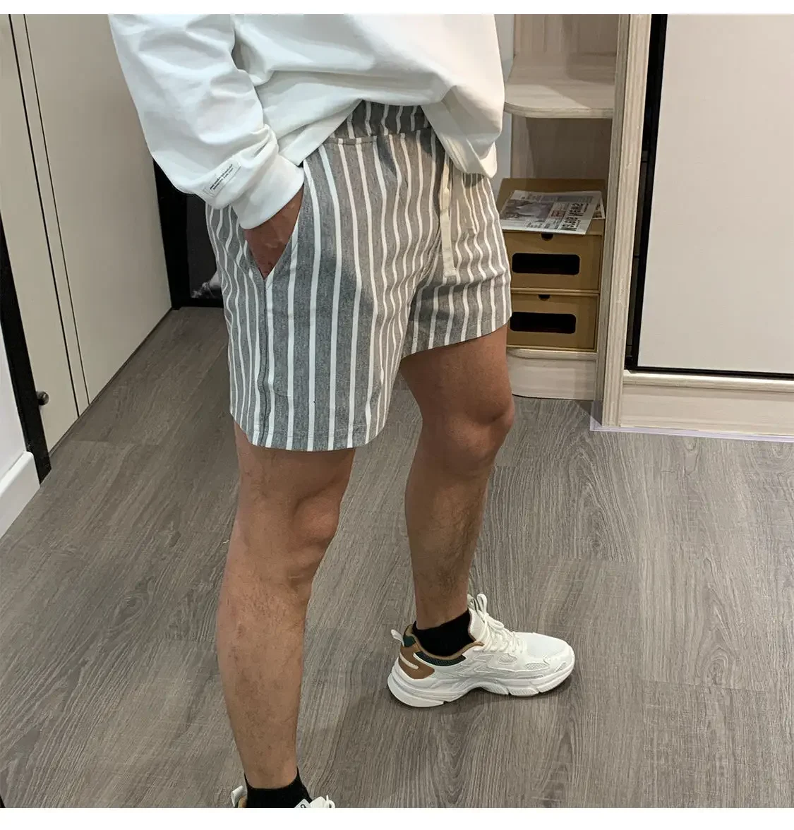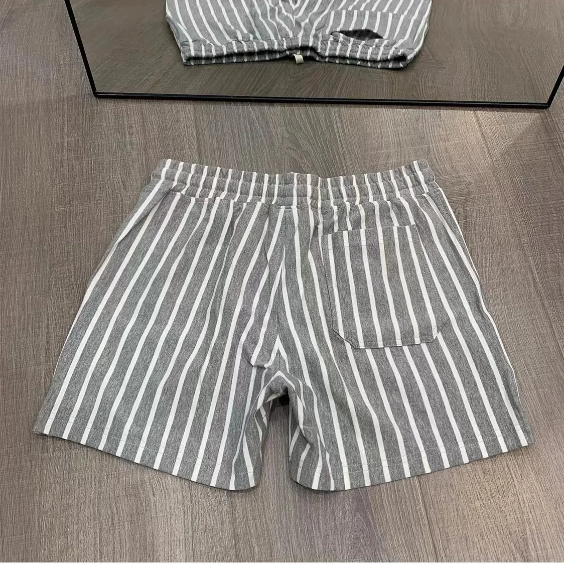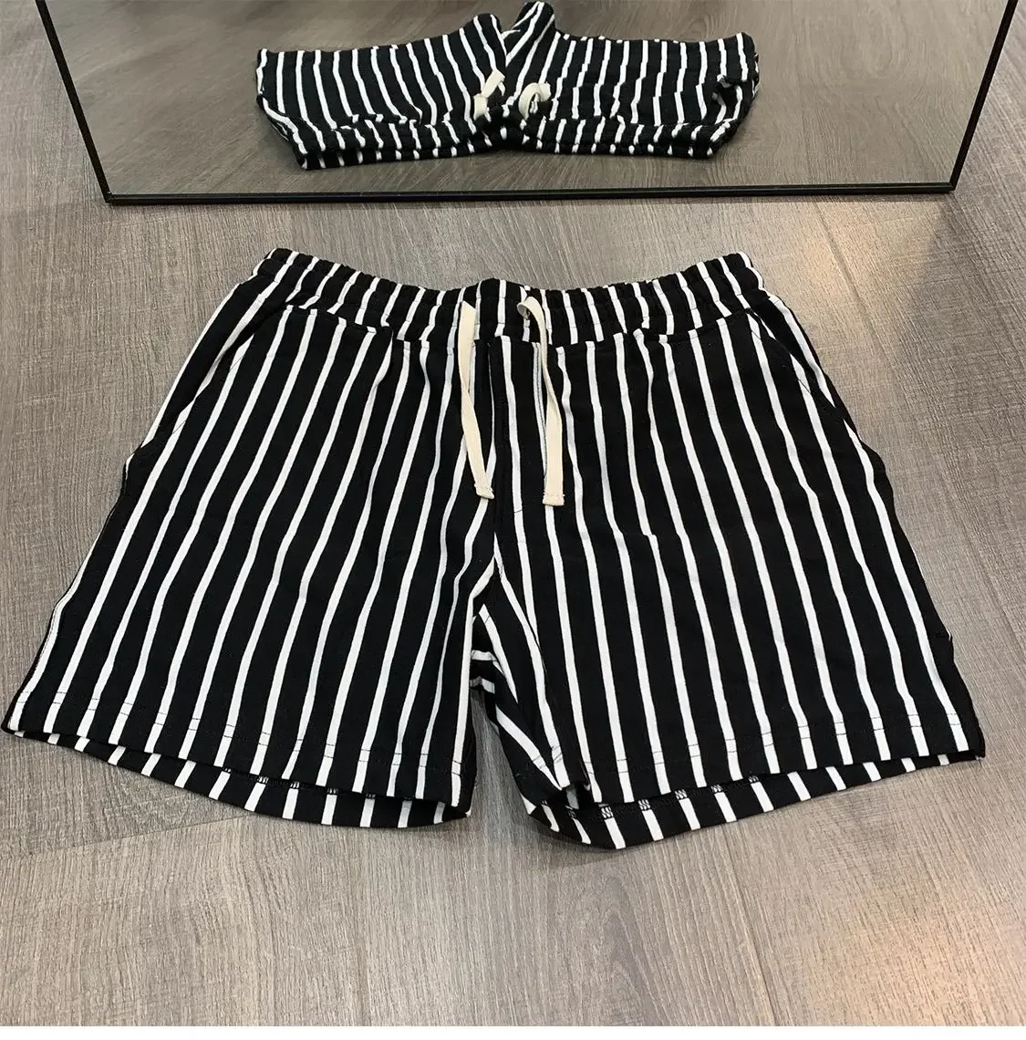 Shorts Men Summer Casual Basketball Sport Fitness Shorts Striped Mid Waist Elastic Drawstring Loose Workout Black Boardshorts